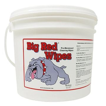 Big Red wipes are low scented, industrial-strength cleaning and degreasing wipes for everything from engines, outdoor equipment to walls, windows, painted or unpainted metals, stainless steel, and industrial cleaning applications. This 2-in-1 solution offers an oversized, dual-textured wipe with no scratching, no rinsing and no residue. Designed with moisture seal packaging and no isopropyl alcohol to keep moisture locked in, even after opening!